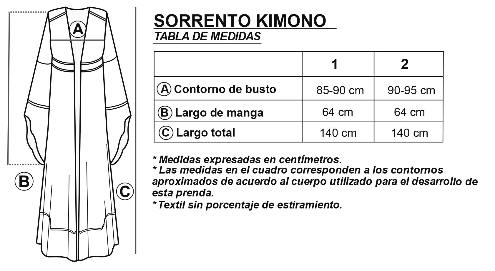 Kimono largo de encaje con puntillas. Manga larga oxford. Cierre con gancho en el centro delantero.