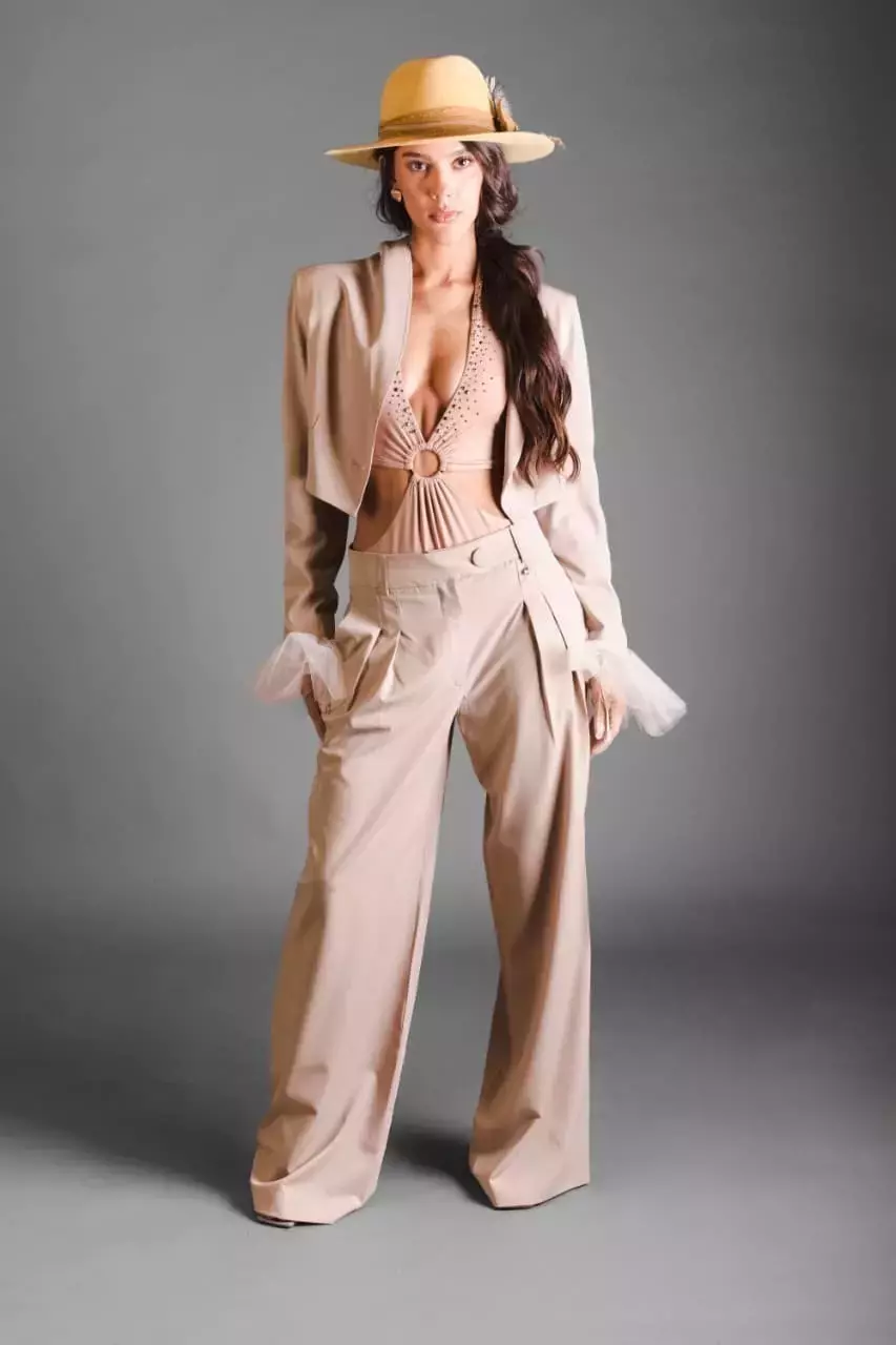 Pantalón sastrero de tiro alto, con pinzas delanteras y corte wide leg que estiliza la figura. Sofisticado y versátil, ideal para looks elegantes o para elevar un outfit de día a noche.